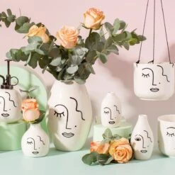 Add a touch of minimalist modern beauty to your home with this set of mini vases. Featuring a white base and black line drawing, this set includes three different shapes. A wonderful way to show off small bunches of blooms.