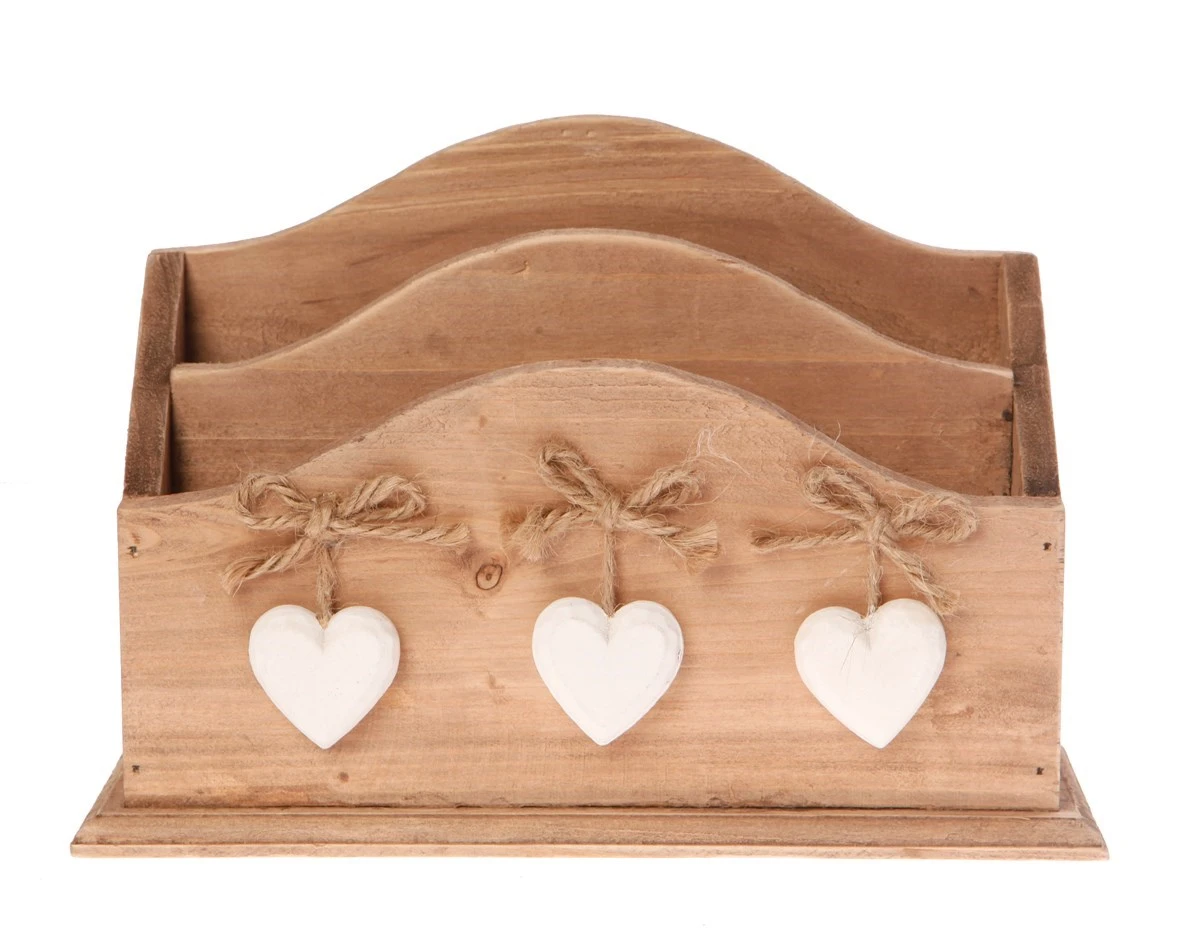 With three white hearts tied on the front with twine, it is the perfect useful shabby chic accessory for your home.