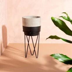 This Black Dip Planter with Wire Stand is just what you need for your indoor garden. Part of our Monochrome collection, our planter has been made from cement and metal wire and features a colourway of black .