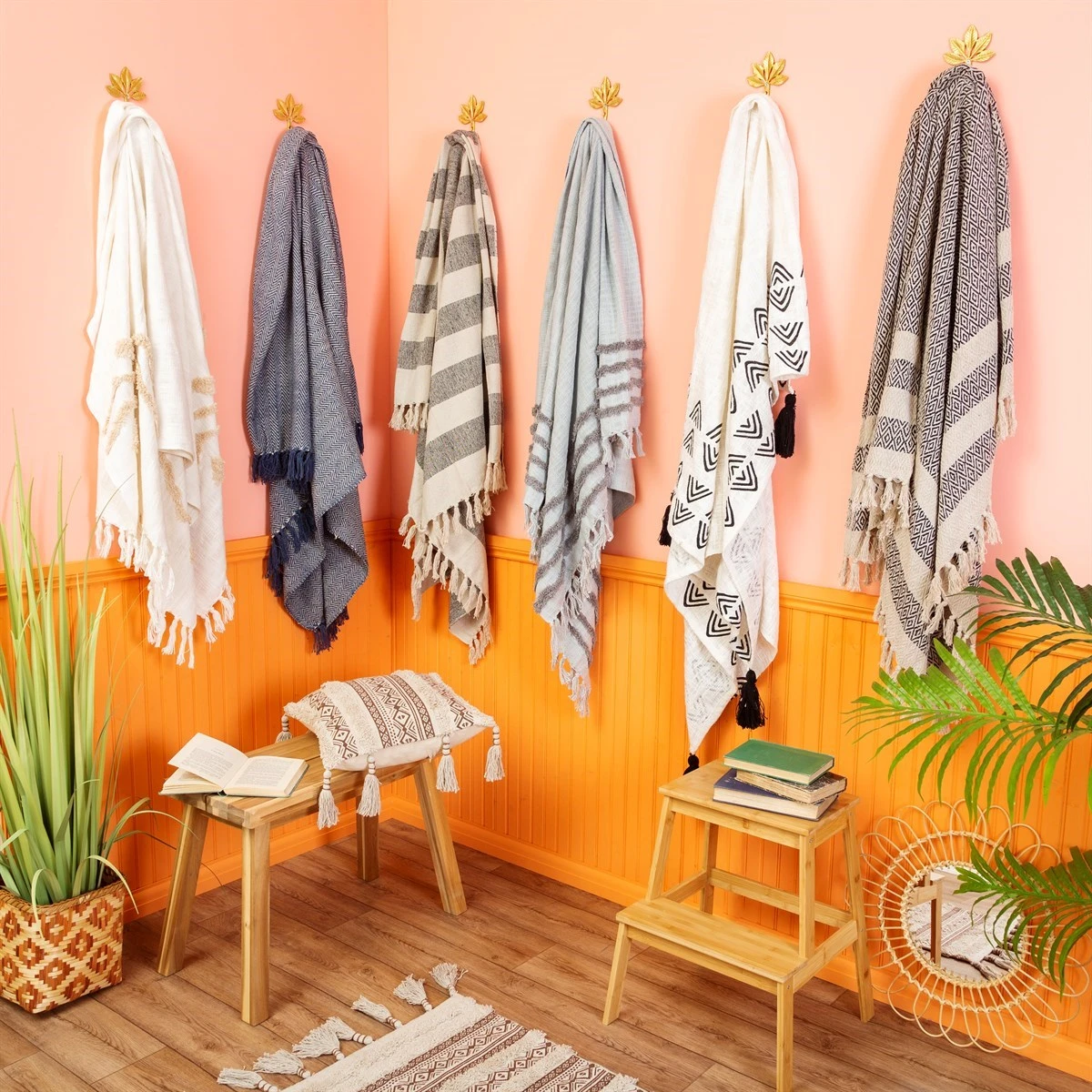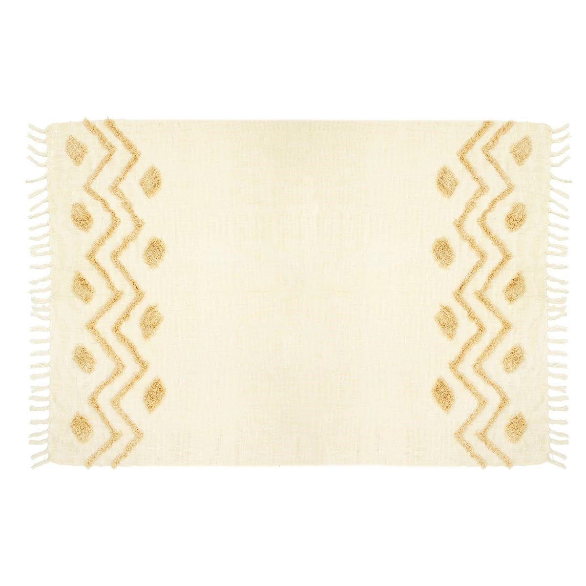 Sun meets sand on rugged coastlines with this Ibiza inspired throw. Bringing together sunkissed colourways and Mediterranean vibes. Featuring sandy tones of coconut white, paired with tassels, tufted details and geometric diamond patterns.
