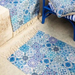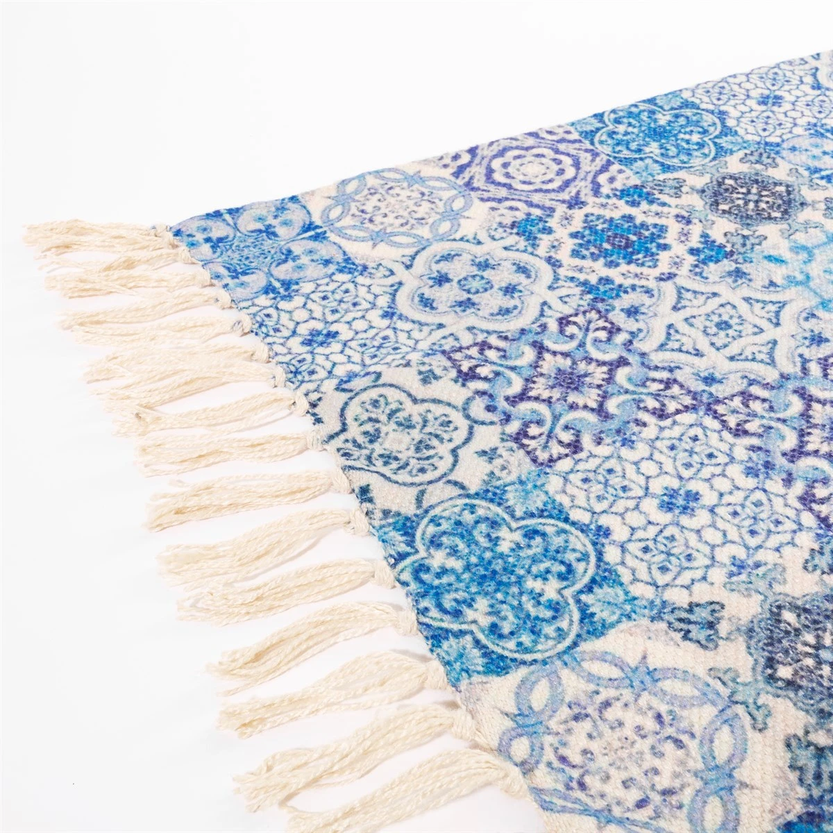 Our Large Blue Tile Print Rug is the perfect addition to your space. A fun addition to the New Mediterranean collection, our rug has been crafted from 100% polyester and is accented with blue.