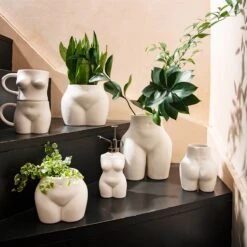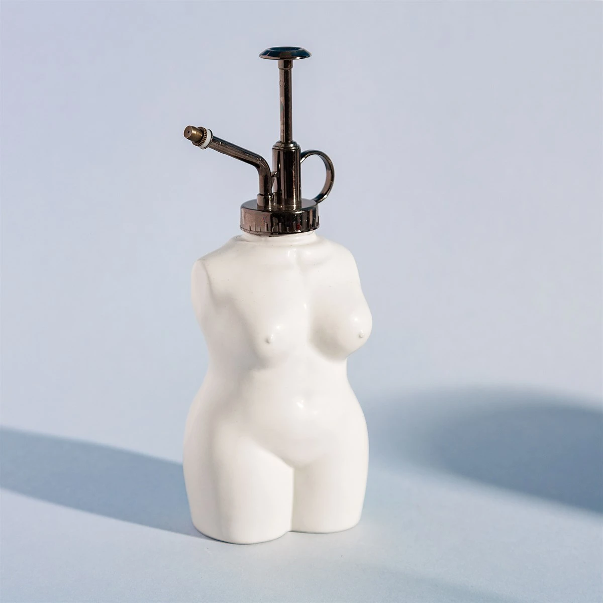 This Body Plant Mister will brighten up your home. A fun addition to the Female Form collection, this plant mister has been made from 100% dolomite and is accented with white.