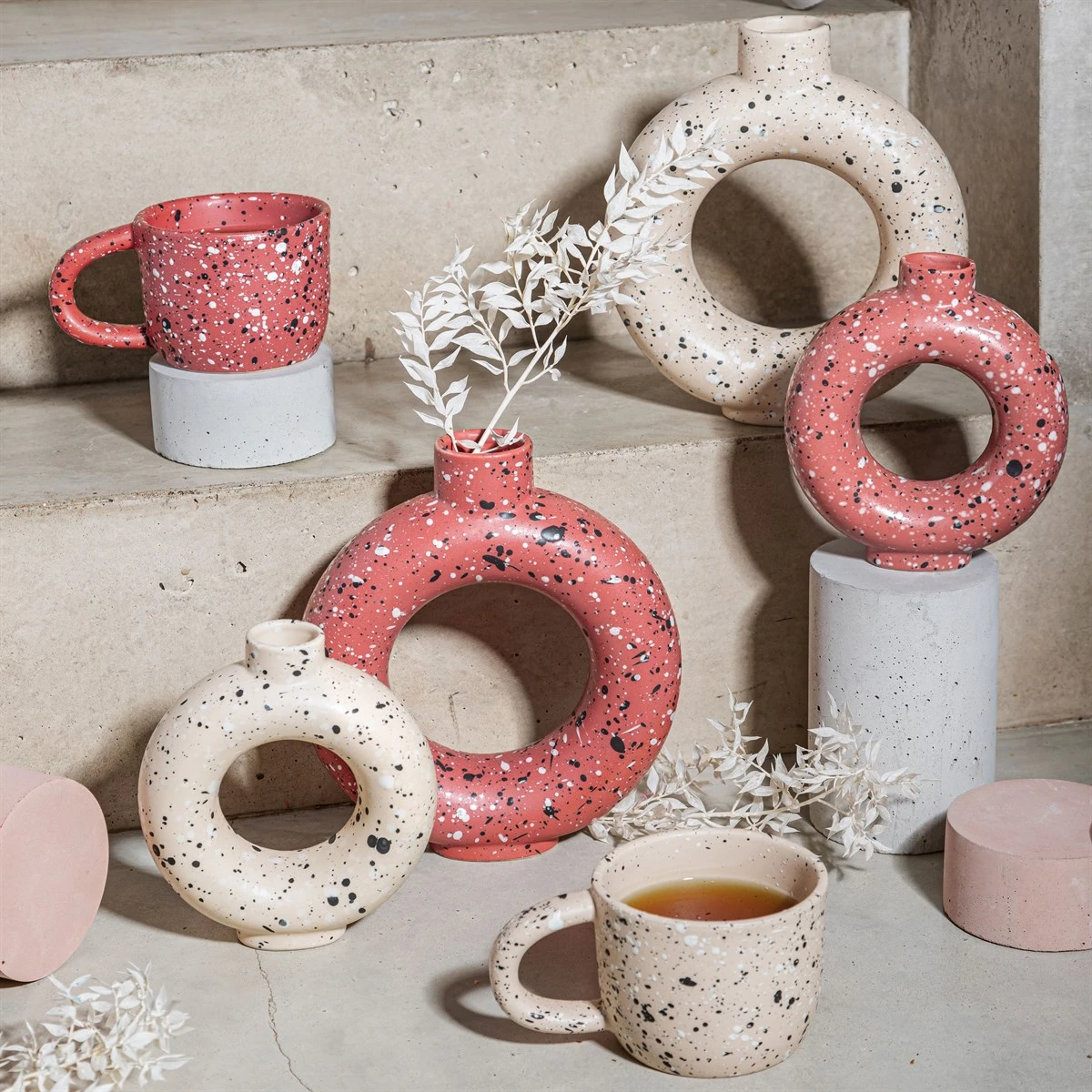 Sass & Belle’s Terrazzo Speckled Small Circle Vase is the perfect addition to any home. Part of our Maximalism collection, the vase has been made from stoneware and is accented with red.