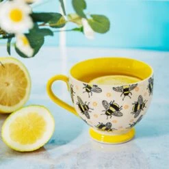 Create warmth and a buzz in the kitchen with this uplifting Busy Bee mug. Catch the nectar with honey hues and a repeat pattern of our hand-stamped design. Bring the bumble of the beloved bee to yourself or as a gift to someone special.