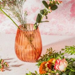 Bring a splash of joyful colour to the home with this decorative vase. Crafted from glass to create a fluted shape, this décor beauty features a warm amber glaze with ribbed edges. Wonderful for displaying a bunch of fresh blooms or dried flowers.
