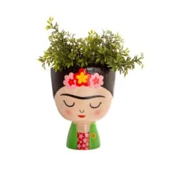 Pop your favourite cactus or succulent in this vibrant Frida Kahlo planter and you’ll have a little piece of Mexico for your windowsill or indoor garden. Featuring shades of bold red and gorgeous green, shaped as our charming Frida with pretty flowers in her hair.