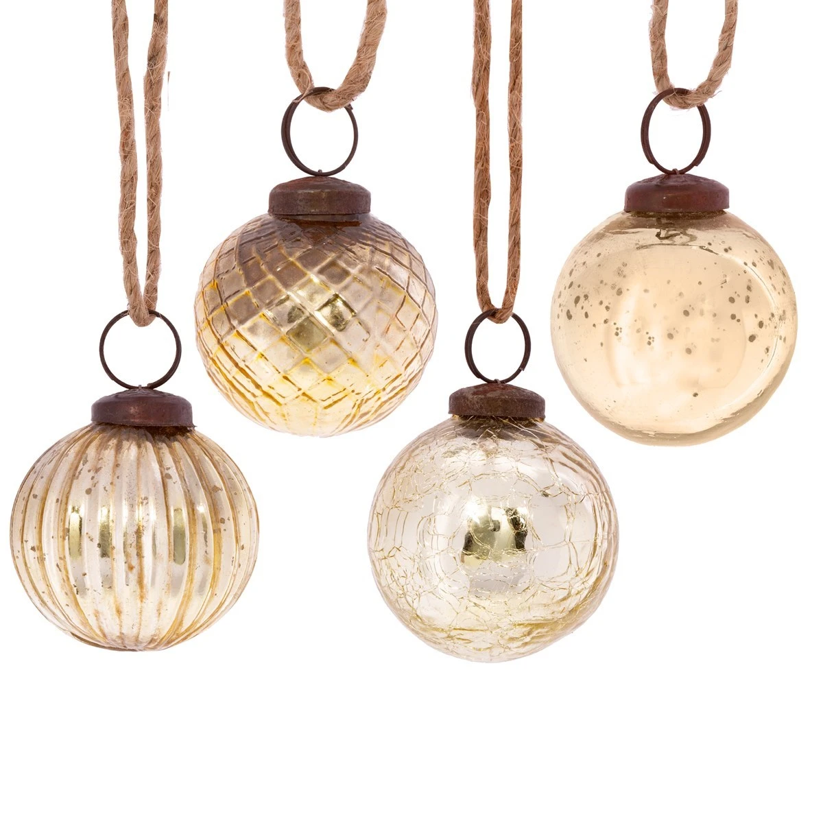 Embrace a planet-focused Christmas this year with our set of four rustic-inspired baubles. Crafted from recycled glass with a festive gold colourway, these hanging decorations are round in shape and feature a crackle effect.