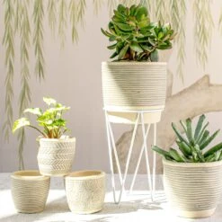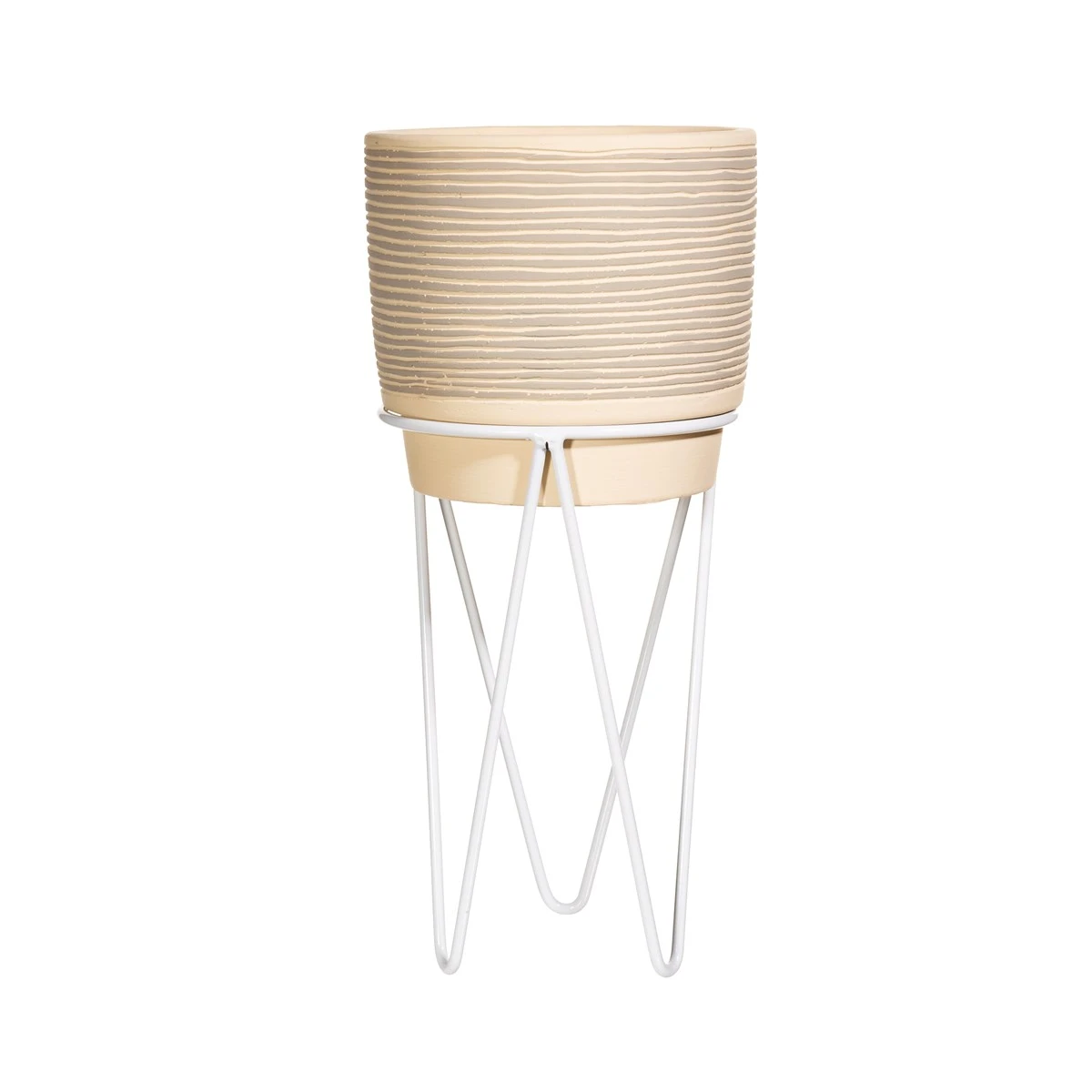 Our Grey Striped Planter with Wire Stand is just what you need for your indoor garden. Made in the style of our Monochrome collection, this planter has been crafted from cement and metal wire and features a colourway of grey.