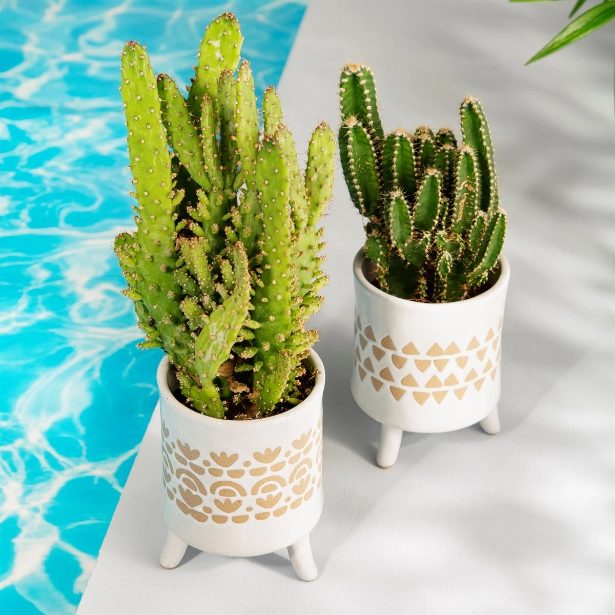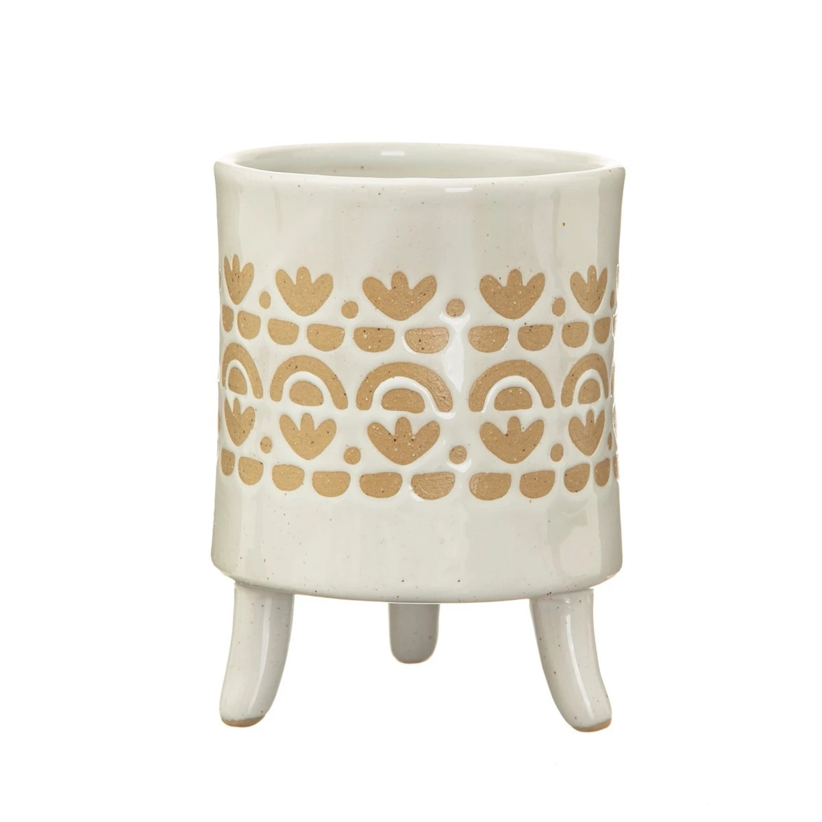 Invite the beachy vibes of the Mediterranean to your indoor garden with this Ibiza Modern leggy planter. Featuring a colourway of speckled coconut white and sandy taupe of which defines the pretty details of the coastal repeat pattern. Pop your fave cacti in and go catch the next wave.