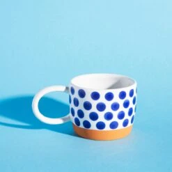 The Naxos Blue Spot Mug will look wonderful in your kitchen Made in the style of our The New Mediterranean collection, this mug has an on-trend design and is accented with blue .