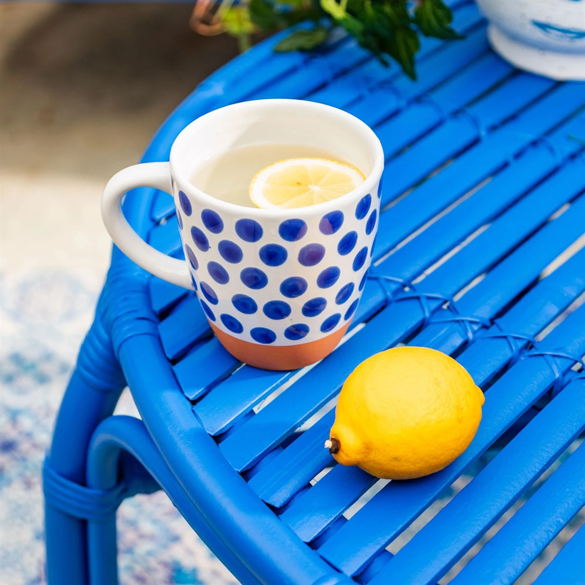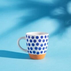 The Naxos Blue Spot Tall Mug will look wonderful in your kitchen Part of our The New Mediterranean collection, this mug has an on-trend design and is complete in the colourway of blue.
