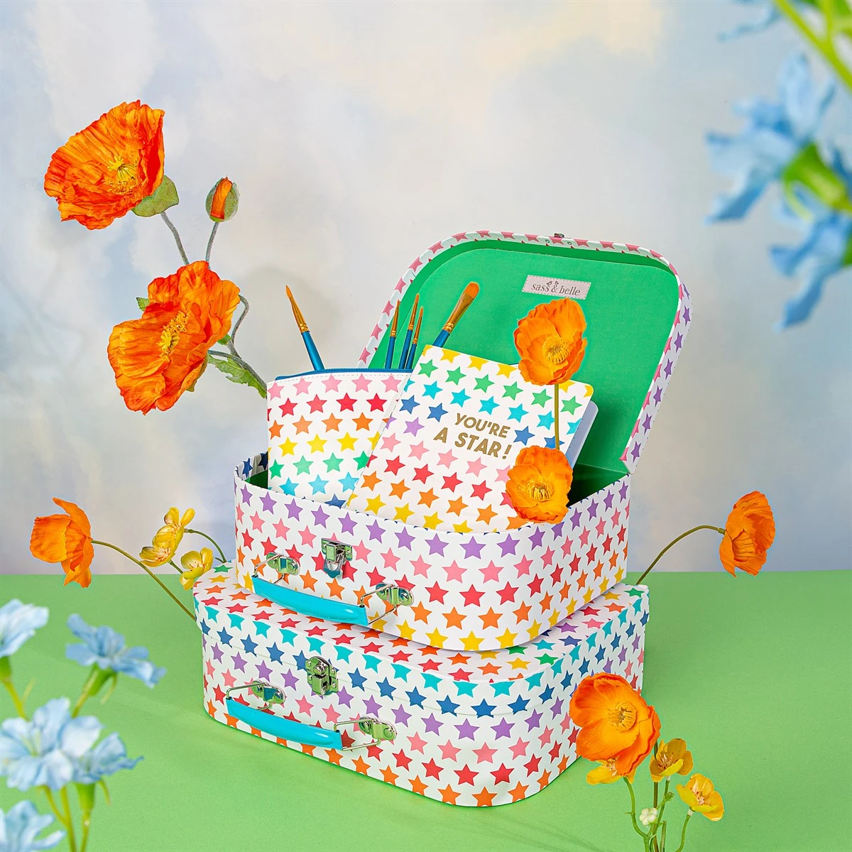 Get your supplies together in style with our Bright and Bold Rainbow Star Pencil Case. This pencil case is part of our Rainbow Star collection and features a repeat pattern of stars that will make it easy to spot in your bag. The bold and bright shades will add a pop of colour to your collection.