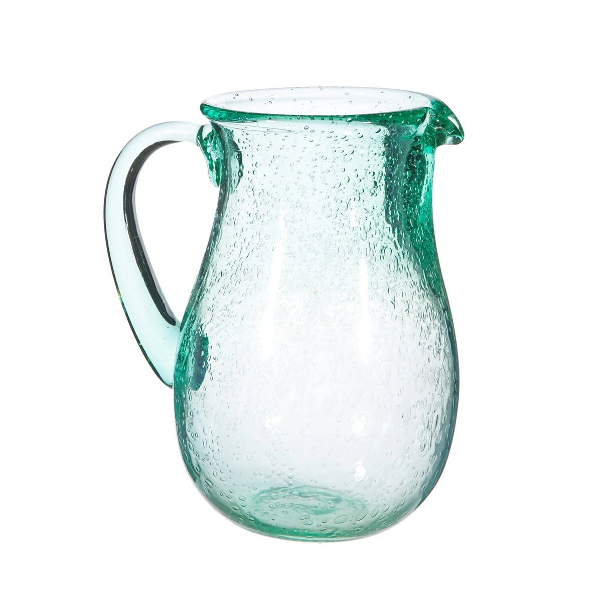 Embrace a more conscious lifestyle with this pretty jug made from recycled glass. Following a minimalistic design with a bubble effect, the organic finish makes it a versatile piece for the home. Fill with your favourite beverage for dinner parties or simply use to display a bunch of flowers.