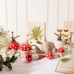 This Red Mushroom Mug with Lid will brighten up your kitchen. A fun addition to the Cottage Garden collection, the mug has a stylish design and is accented with red.