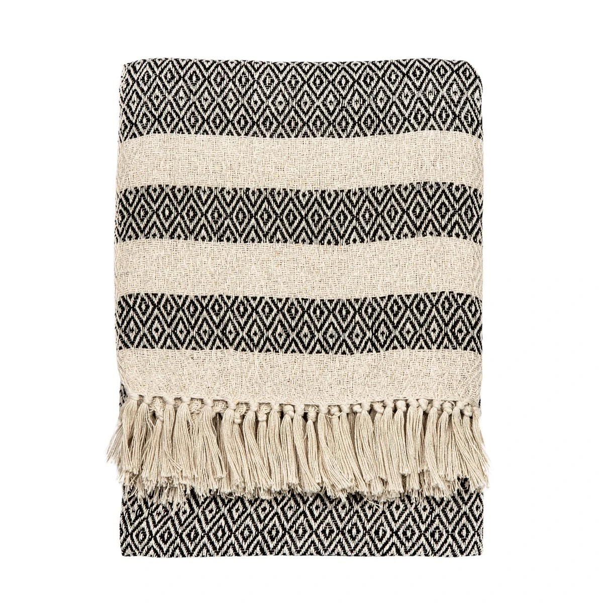 Our Scandi Boho blanket throw features beautiful texture and tassels. Made from a soft mixture of materials, the gorgeous woven stripe details are created with a natural colourway of cream and black.