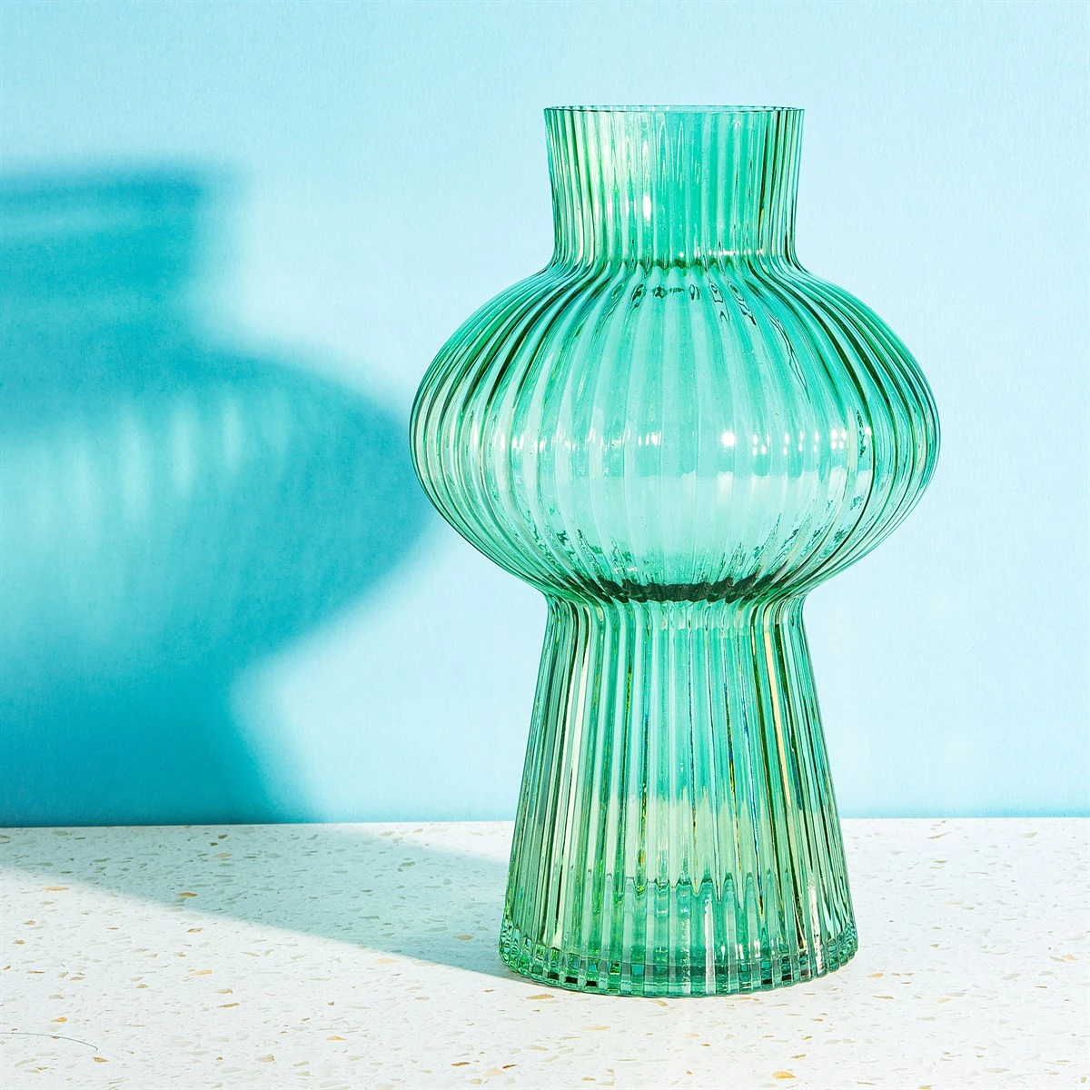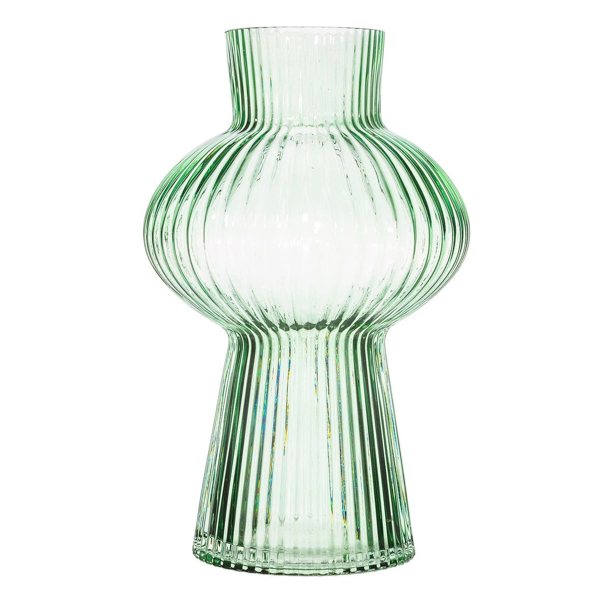 Our Green Shapely Fluted Glass Vase will brighten up your home. Part of our Bohemian Home collection, the vase has been made from 100% glass and is accented with green.