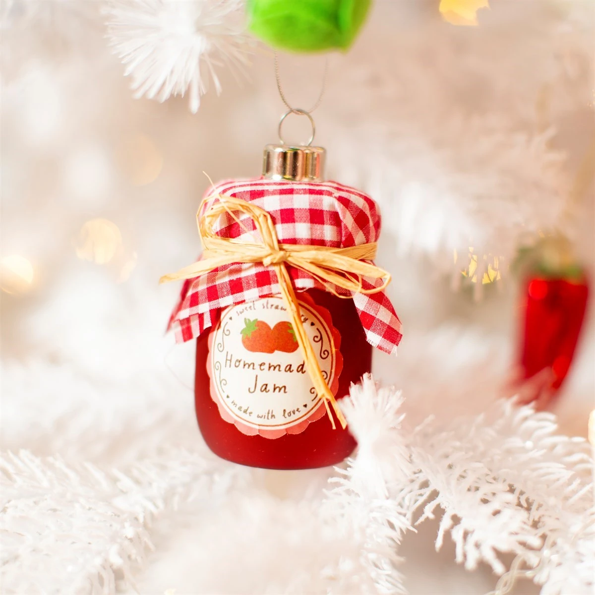 Nothing beats a good bit of jam on toast. Crafted from glass with details of vibrant red, this hanging decoration is shaped as classic jar of strawberry jam.
