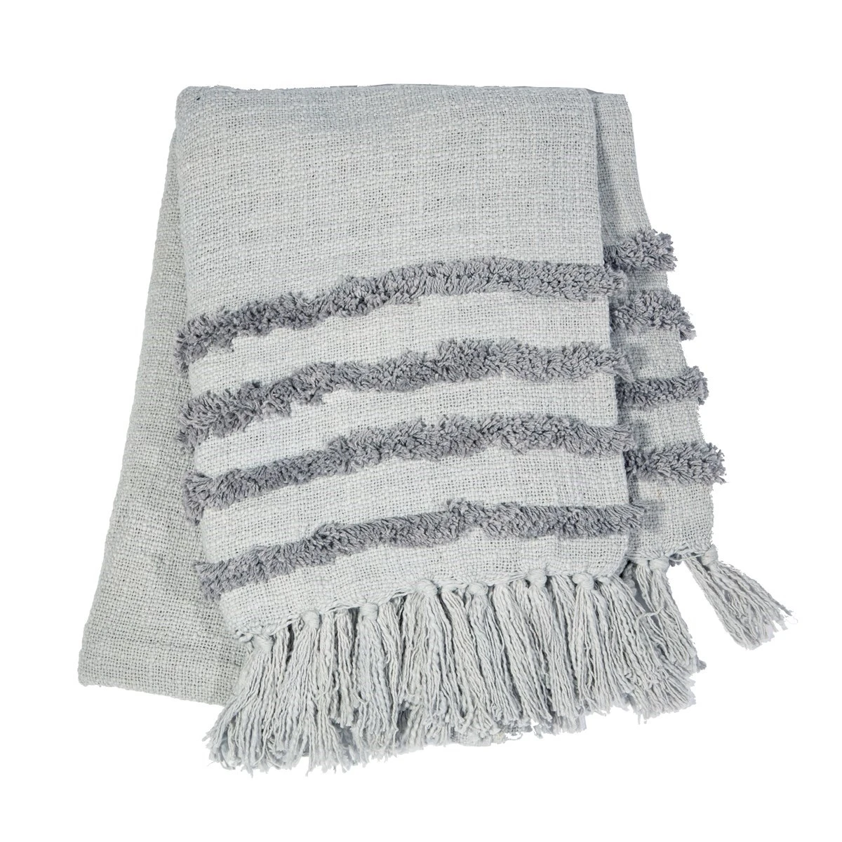 Enjoy and embrace the bohemian style of this cosy blanket throw, featuring a beautiful tufted stripe and tassels. The gorgeous woven details are created with a natural colourway of grey tones, allowing this home accessory to be a chic decor piece as well as great for snuggling moments.