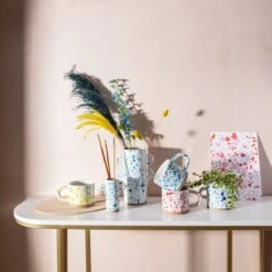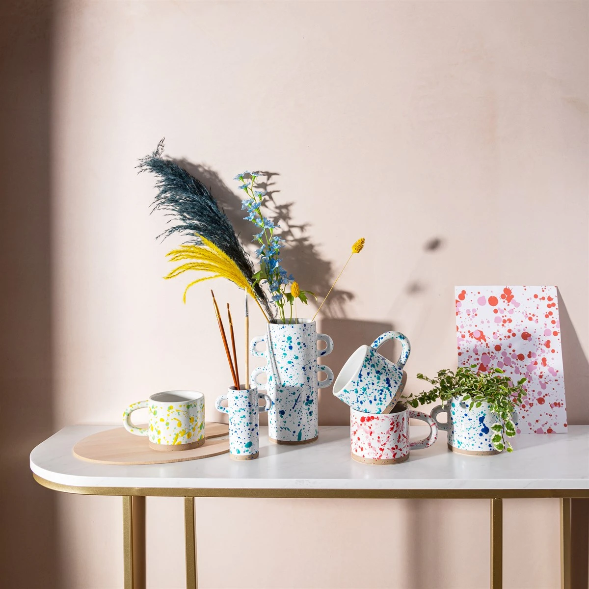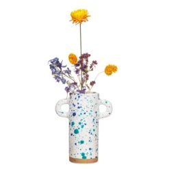 Our Splatterware Small Vase will brighten up your home. Made in the style of our Maximalism collection, this vase has been crafted from stoneware and is accented with blue.