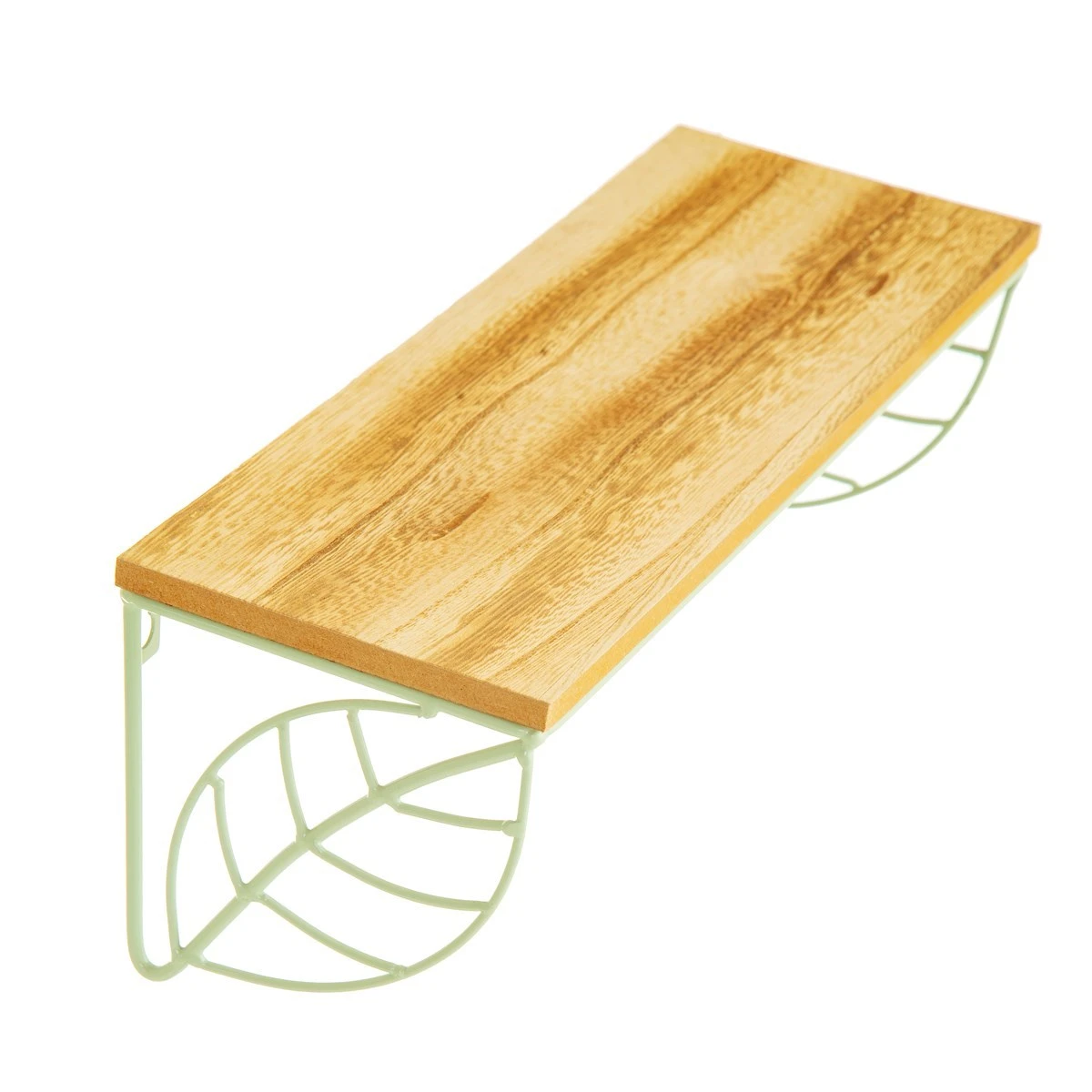 Refresh the home and bring the outdoors in with this wire shelf. Taking a vintage interior twist on botanical motifs, this decorative storage solution brings together pastel green leaf shapes with a natural wood effect.